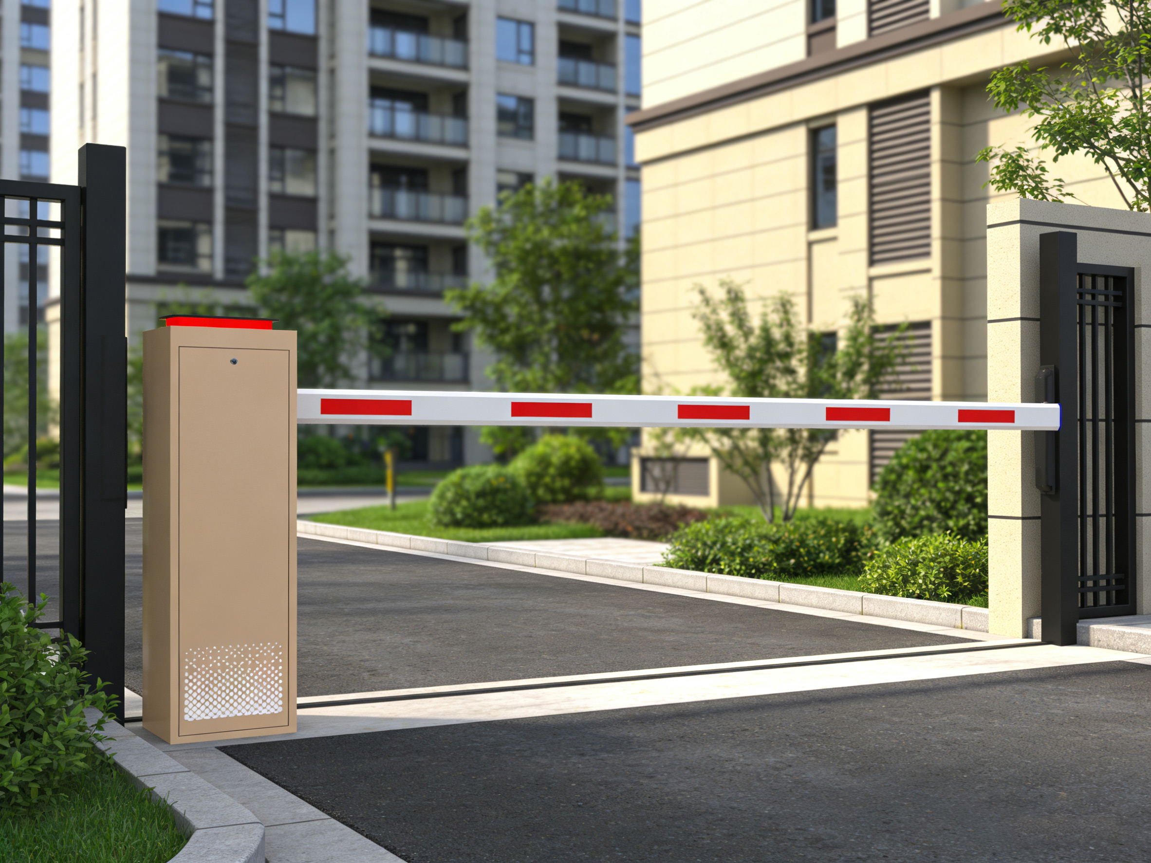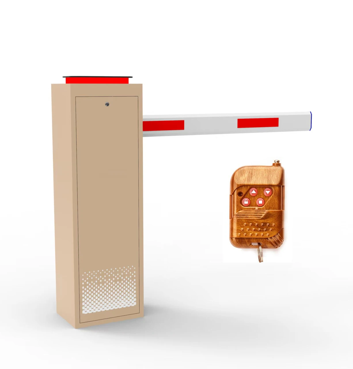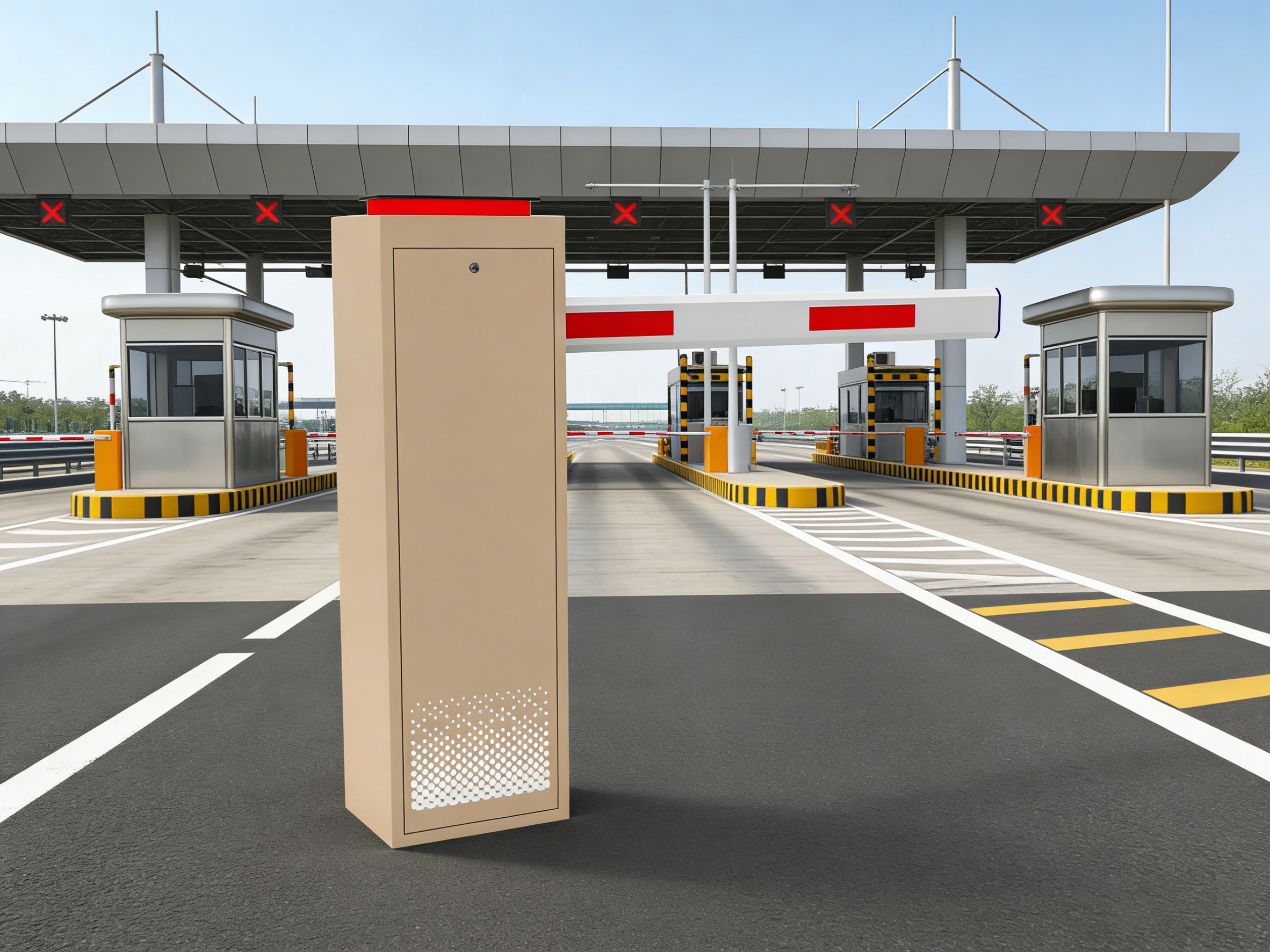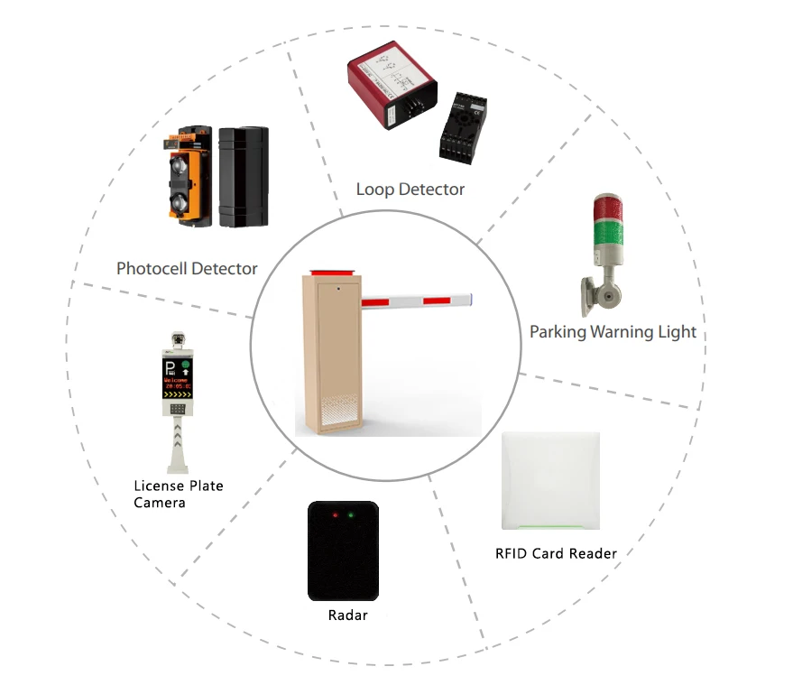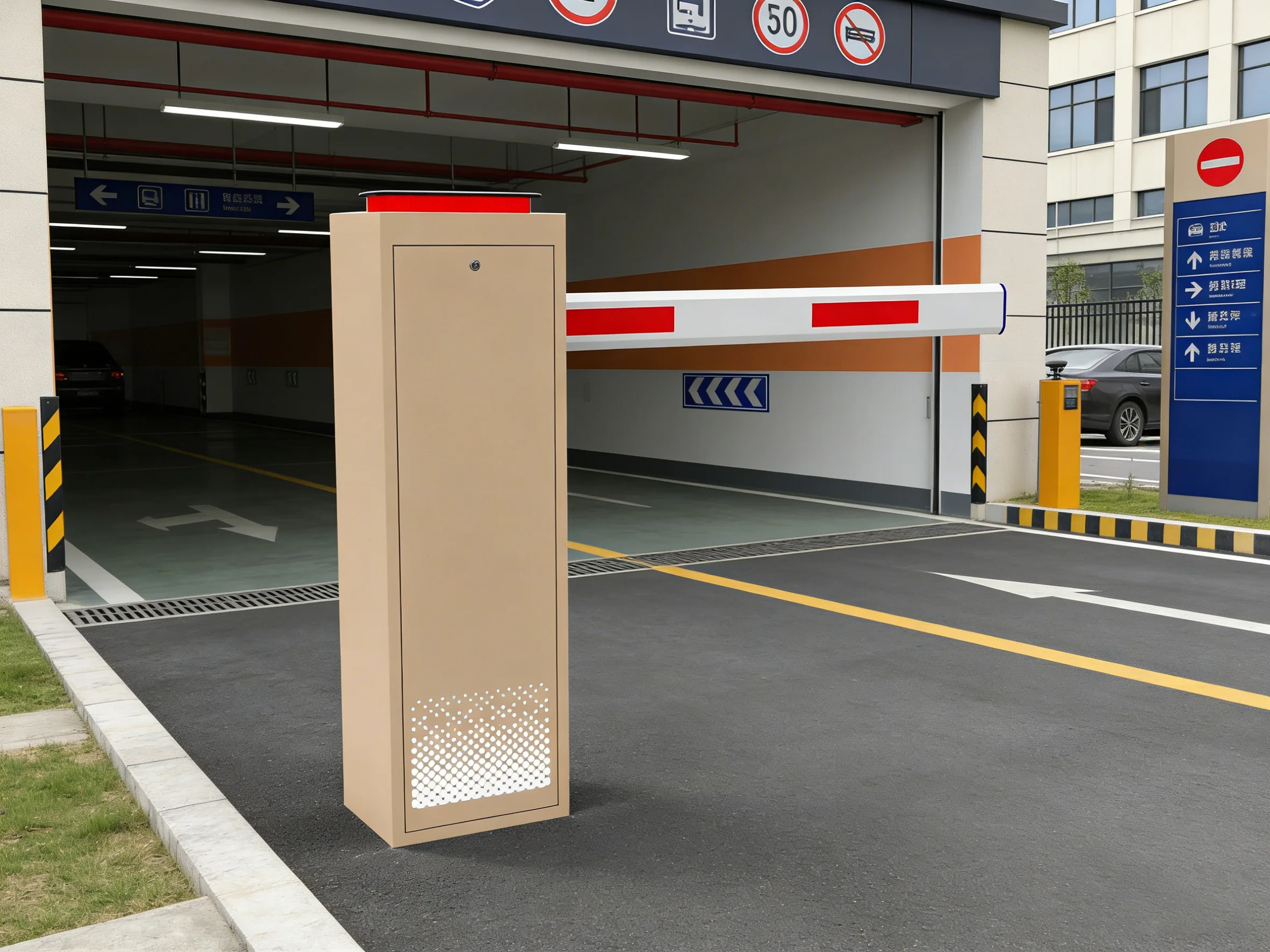 Industrial-grade metal boom barrier system with IP55 waterproof protection. Features IC card access control and collision avoidance technology to secure parking entrances in harsh environments. Reliable and robust parking access solution.