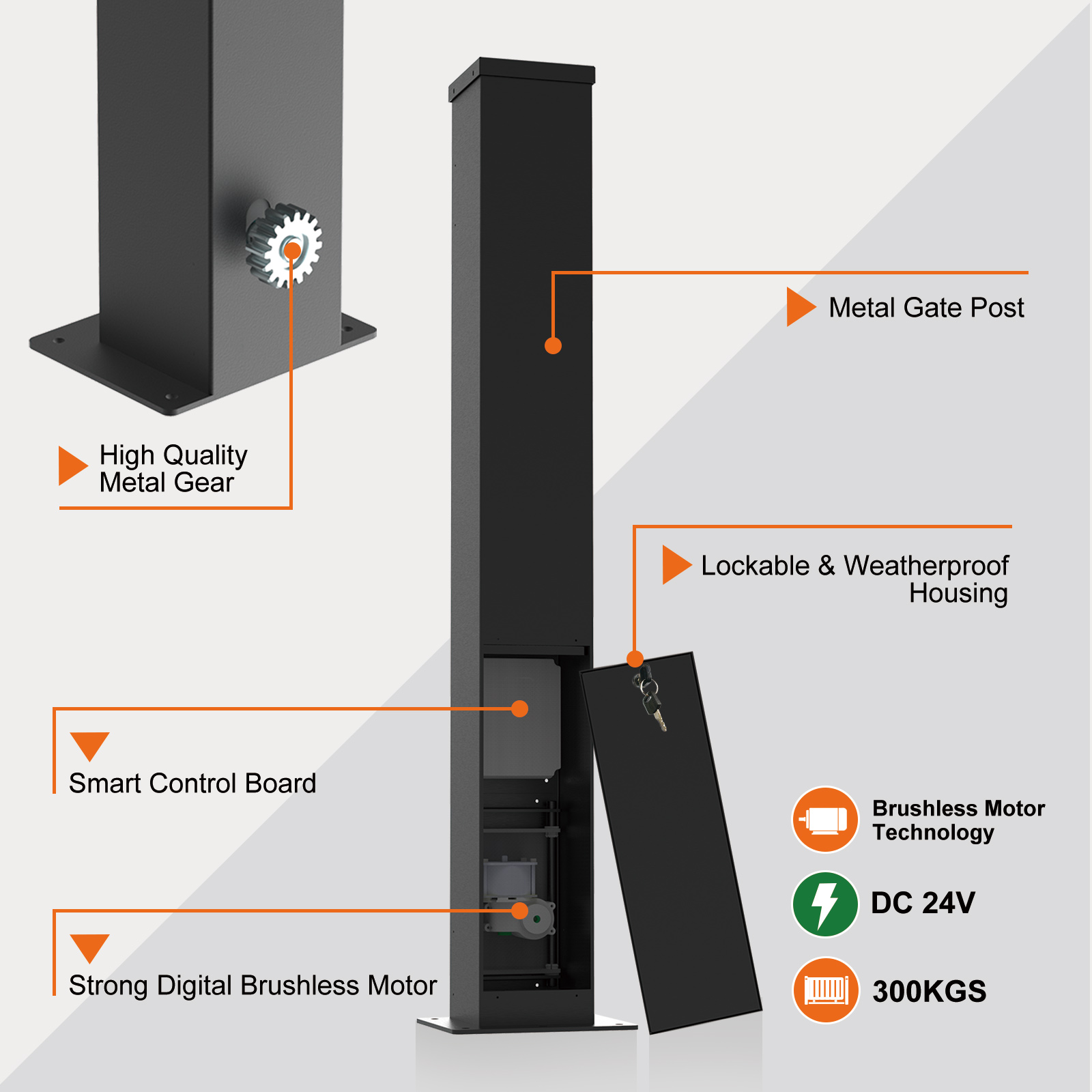 Integrated In-Post Solution: The motor is concealed within the gate pillar, saving precious driveway space and protecting the hardware from the elements while maintaining a clean look for your villa.