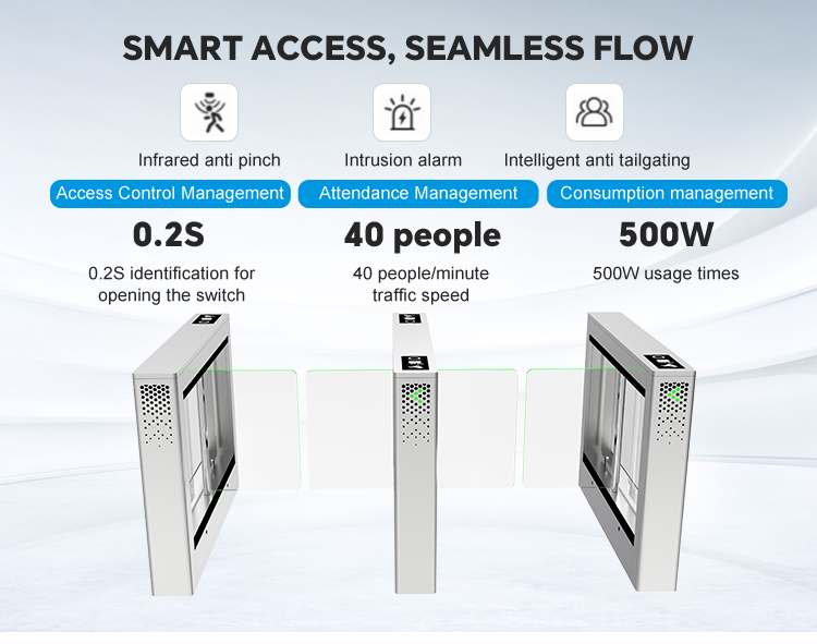 ◆ Customizable Pass Speed: Kecepatan buka-tutup dapat disesuaikan untuk berbagai lokasi seperti gedung perkantoran, pabrik, atau bandara.