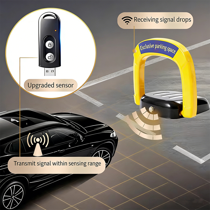 Intelligent induction ground lock for automatic garage protection. Thickened steel parking bollard for premium residential security.