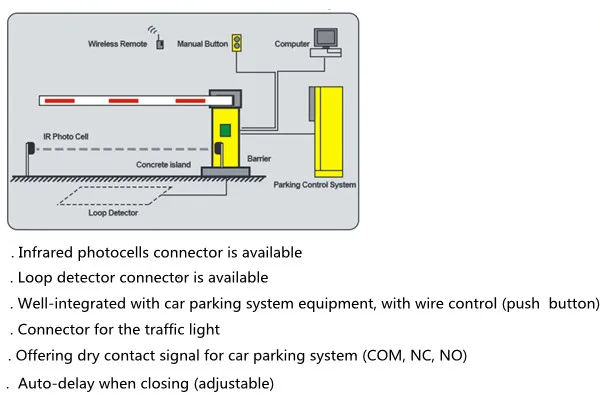 Barrier gate elektrik lalu lintas jalan raya untuk manajemen parkir mobil profesional. Perangkat keras handal untuk jalan tol dan akses gedung komersial.