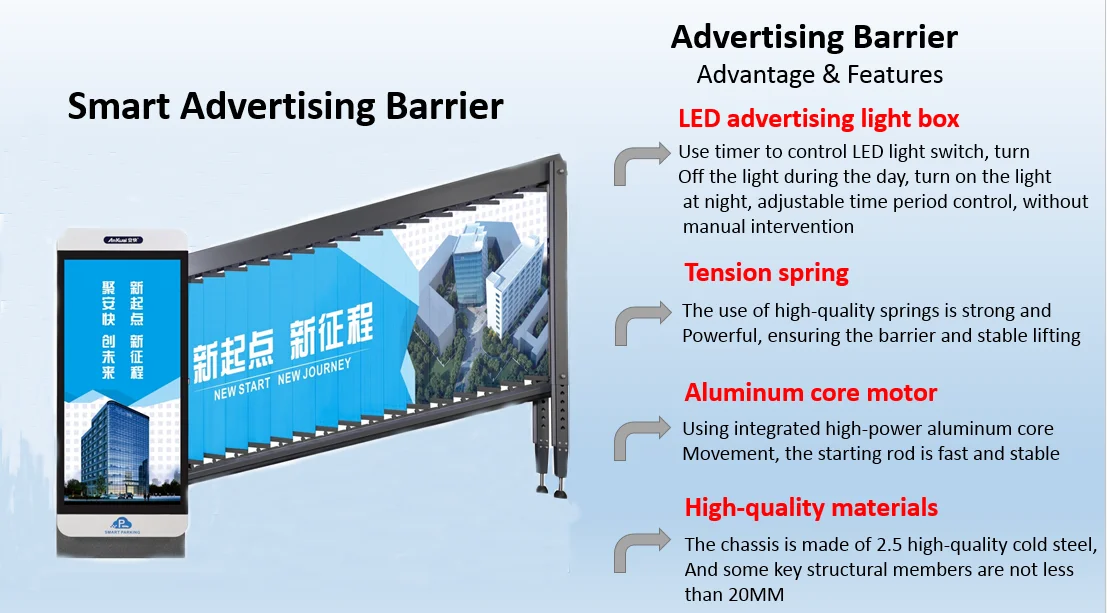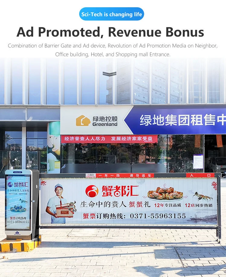 Palang parkir iklan elektrik komersial berkualitas tinggi. Media promosi efektif sekaligus alat kontrol akses kendaraan yang aman dan tahan lama.
