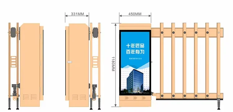 4. Lengan Tipe Pagar: Lengan vertikal berbentuk pagar dengan celah 110mm untuk keamanan ekstra dan membatasi akses pejalan kaki.