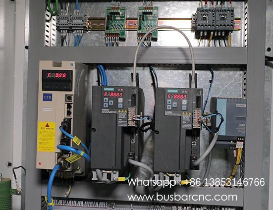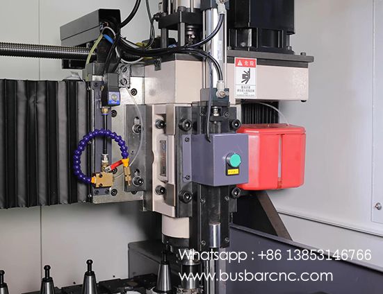 It is equipped with a six-position inline tool changer, automatically adjusting tool changes based on busbar width.
