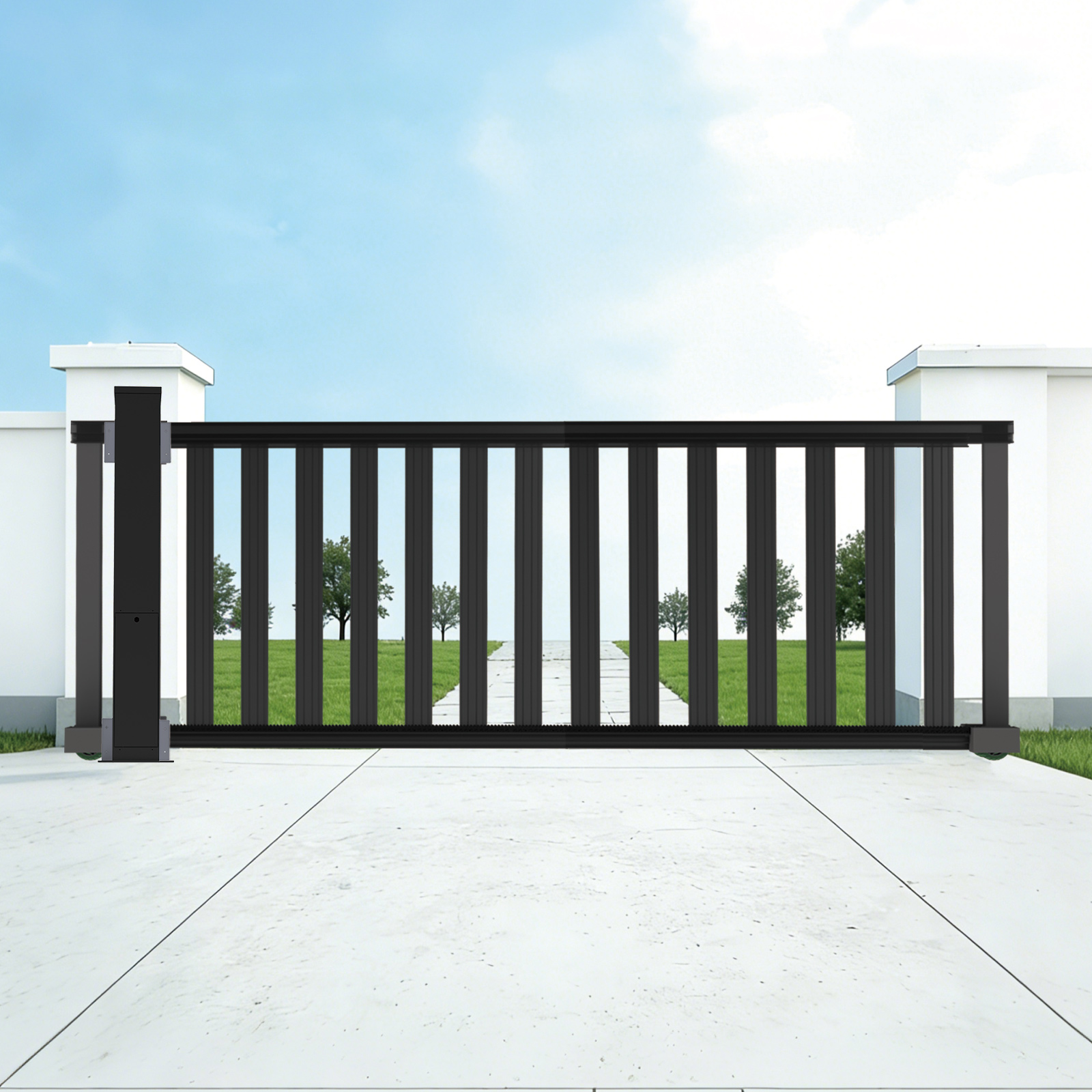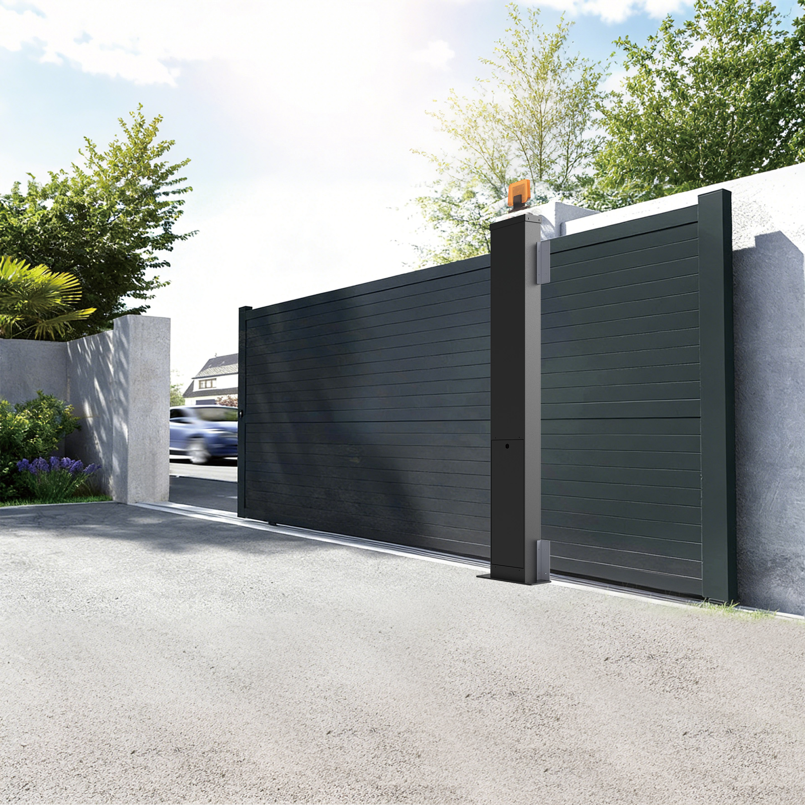Integrated In-Post Design: The motor is hidden inside the pillar, which saves precious external driveway space and protects the aesthetics of your villa entrance.